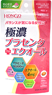 プラセンタエキス末600mg、プラセンタ(生胎盤換算)30,000mg、大豆胚芽抽出発酵物80mg、エクオール4mg |
